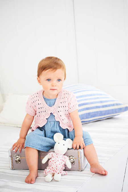 Bambino is a really practical baby yarn. This pattern has a design for two different bolero jackets. These patterns are suitable from birth to seven years of age.