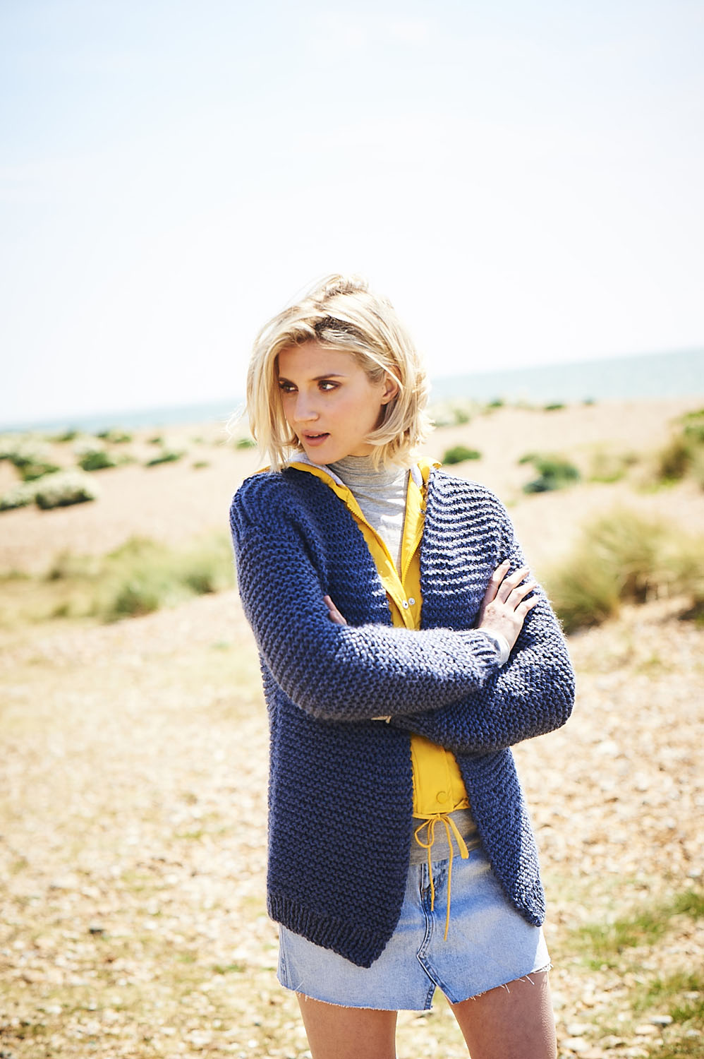 This is lovely easy pattern suitable for beginner knitters or those who just want something untaxing to knit whilst watching tv. It's a simple garter stitch cardigan with a round or v neck. No button bands.